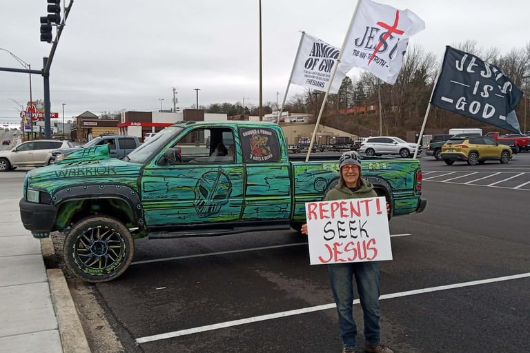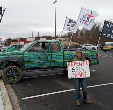 We are a road-rolling, sign holding ministry whose goal is to re-focus minds of motorists on Jesus.